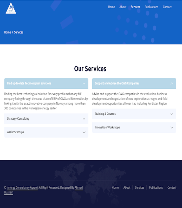 Innergy Consultancy Aqrawi ( ICA ) is a consultancy company working with helping new startups and company which working in oil, gas and energy. With an analytical, industry-disruptive approach to their work, they needed new branding and a website that would affirm their position as a cutting edge innovator. We built a fresh, hi-tech website and brand that made ICA stand out in their industry.